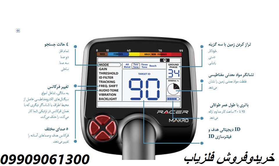 کامل فلزلت آهنی را نیز دارا می باشد، فلزیاب ریسر RACER توانایی ذخیره سازی تظیمات در سیستم را دارا می باشد .